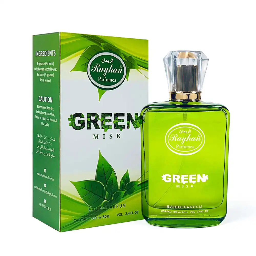 Rayhan Perfumes – GREEN MISK Eau De Parfum is a refreshing fragrance that harmonizes nature’s purity with modern elegance. Designed for those who cherish a clean, calm, and composed aura, this perfume offers a gentle escape into a world of leafy freshness and subtle sensuality.