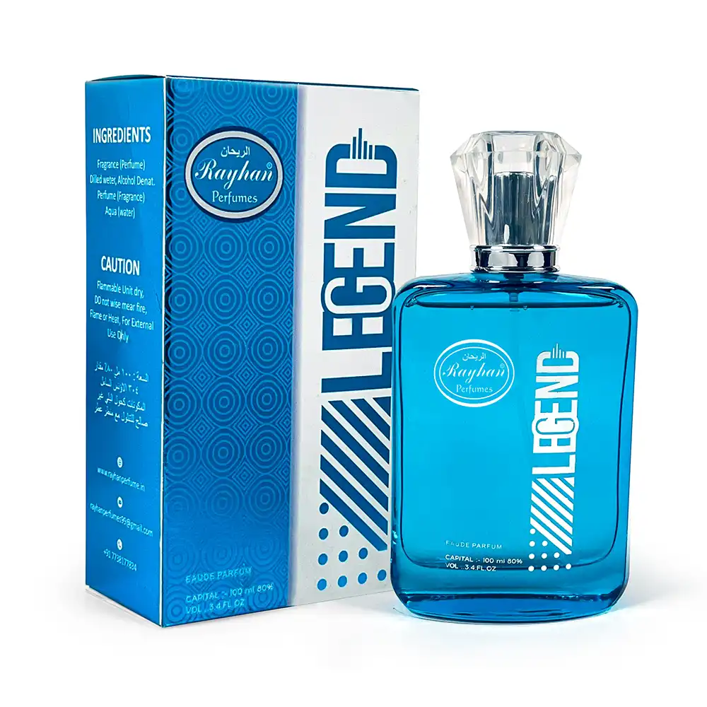 Rayhan Perfumes – Legend Eau De Parfum is crafted for the man who leaves a mark wherever he goes. This fragrance opens with crisp citrus and aquatic notes, transitioning into a heart of herbs and woods that inspire strength and elegance. The base is subtly warm and sensual, ensuring a lasting impression from day to night.